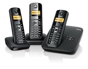 Das Telefon mit drei Mobilteilen für lange Gespräche und einfacher SMS-Funktion mit integriertem Anrufbeantworter